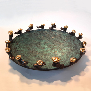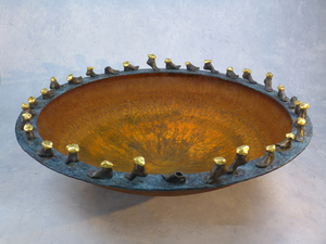 2026We wandelen door de tijd, zijn druk, we zoeken en verlangen. Wat zijn de werkelijke schatten van het leven? Materiaal: brons, bladgoud & cortenstaal (verkocht)